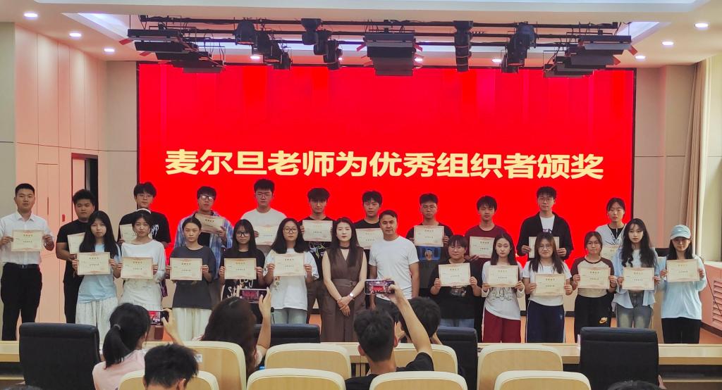 学院团委负责人麦尔旦代表学院向全体运动员和全体工作人员的辛勤付出表达了衷心感谢,同时也客观总结了在此次运动会的亮点与不足。随后,他宣读优秀工作者、优秀运动员名单,并为获表彰同学依次颁发奖状和奖金并合影留念。