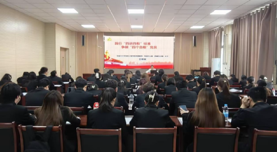 4月11日上午10:00,网络安全学院与纺织服装学院在信息综合楼202联合开展入党积极分子培训班,邀请信息工程学院通信系学生党支部书记古翠英以“践行‘四讲四有’标准,争做‘四个合格’党员”为主题授课,全体入党积极分子参加培训。